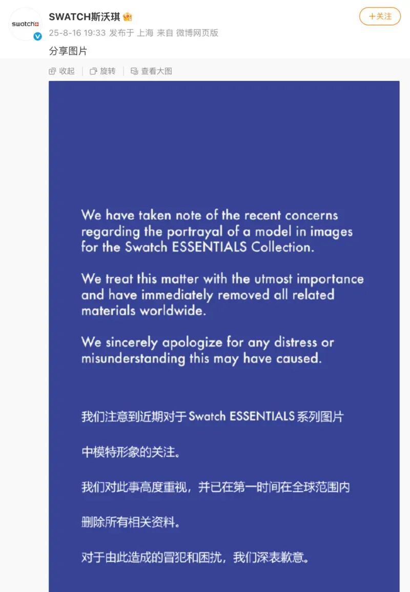 就在全智贤事件发生前一个月,瑞士手表品牌Swatch也因为宣传图中的“眯眯眼”造型引发争议。