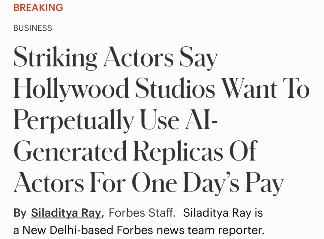 像好莱坞曾因数字克隆技术,造成演员工会的集体抗议、罢工。