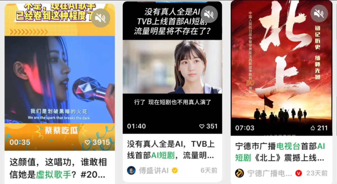 很多AI微短剧已经在电视台播出,虚拟歌手、偶像、演员都已经不新鲜;