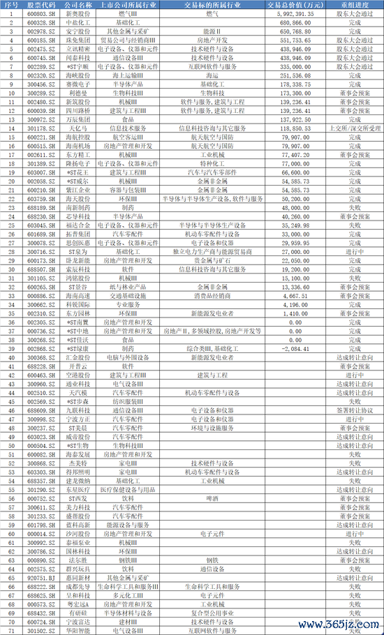 界面新闻统计梳理发现,今年71桩重大并购重组案例中,有近半数为跨界并购,涉及能源、房地产、科技等多个领域,典型案例包括主营生态工程建设的*ST花王(603007.SH)作价6.66亿元跨界收购汽车与汽车零部件企业尼威动力。还有十余家企业进行产业链资源整合型并购,包括新奥股份(600303.SH)子公司私有化新奥能源(02688.HK);主营钒钛磁铁矿采选等业务的安宁股份(SH688175)65亿元收购经质矿产。